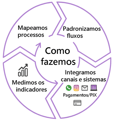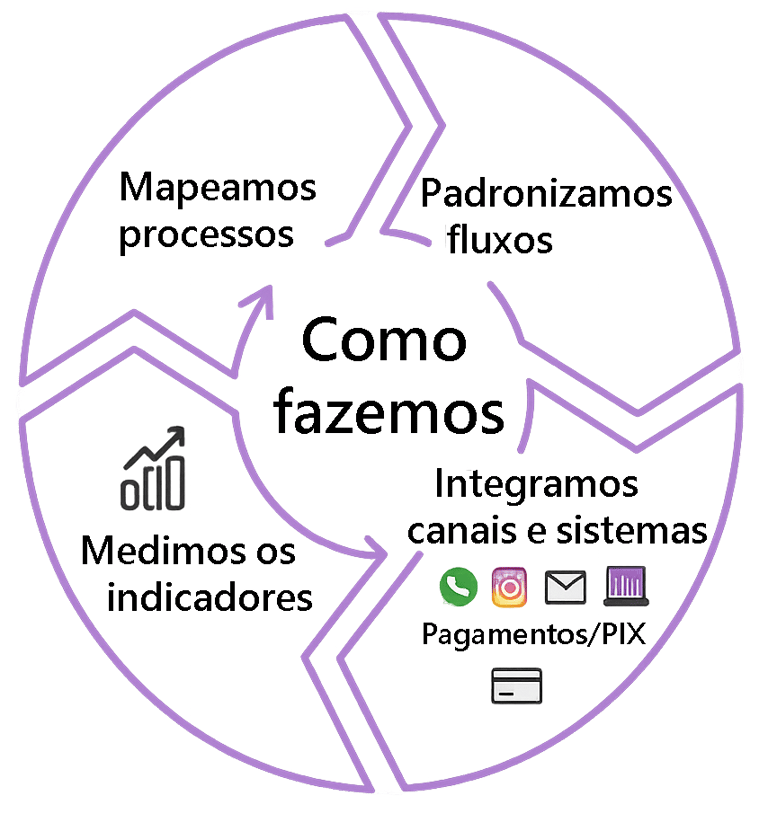 2.Integramos canais (WhatsApp, Instagram, e-mail, e outros) com o seu sistema de gestão e pagamentos