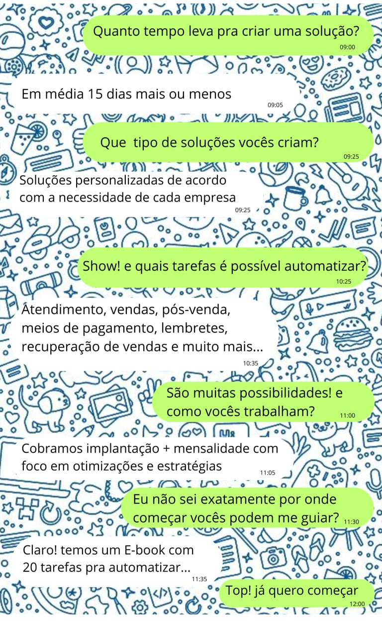 O agente de atendimento (bot) melhorou nossa taxa de respostas no WhatsApp em pelo menos 30%.
